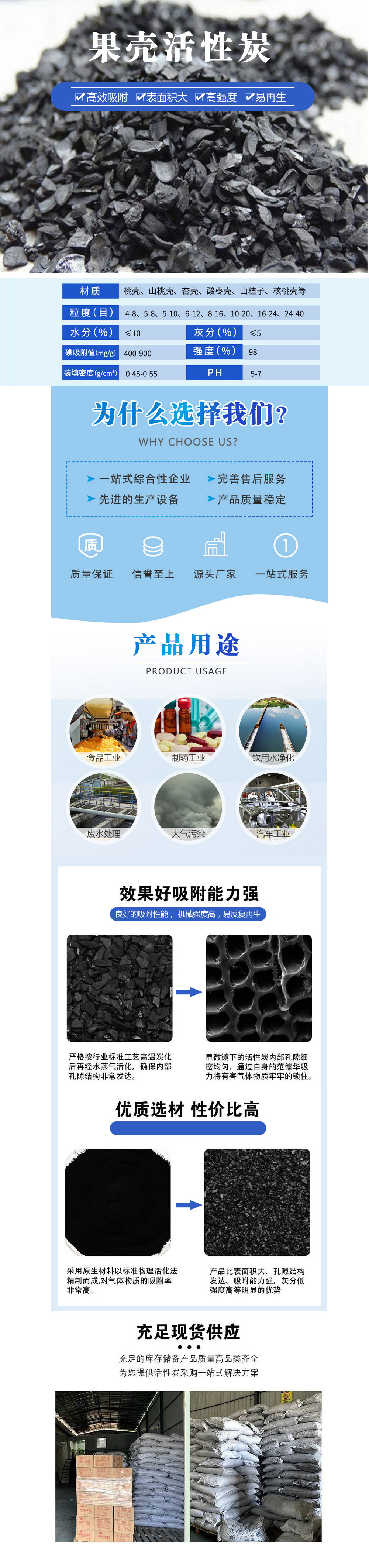 龍華的果殼活性炭選用優(yōu)質(zhì)杏殼、桃殼、核桃殼、棗殼等果殼為原料,經(jīng)系列生產(chǎn)工藝精制而成,外觀呈黑色顆粒狀。果殼活性炭?jī)?yōu)點(diǎn)是孔隙結(jié)構(gòu)發(fā)達(dá),比表面積大,吸附性能強(qiáng),庫(kù)層陰力小,化學(xué)性能穩(wěn)定,易再生。適用于高純度的生活飲用水、工業(yè)用水和廢水處理的深度凈化脫氯、脫色、除臭和黃金提煉等方面。